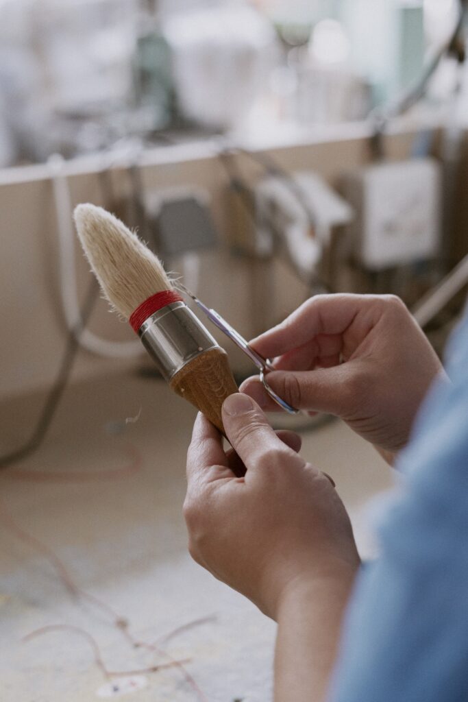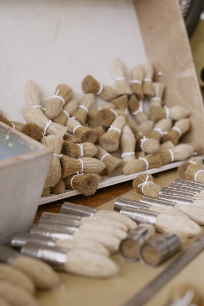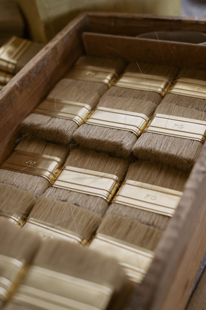 Sur demande, nous proposons une gamme de brosses (pinceaux) et spalters de fabrication française, de très haute qualité, en pure soie naturelle de porc.