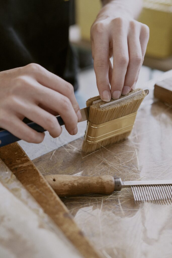 • finir de les nettoyer avec du savon de Marseille ou du savon noir et de l’eau tiède pour ne pas figer l’huile. Avec ce traitement de qualité, vos brosses resteront en très bon état longtemps.